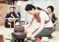 ステージ一面に畳を敷き詰めて桐原先生と生徒さんによる抹茶のお接待があり、賑わいました。