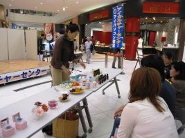 抽選券を配って、出来上がったブーケはプレゼント。体験も好評でした。