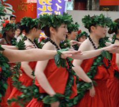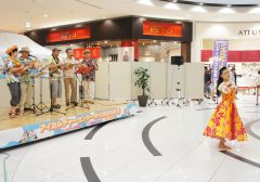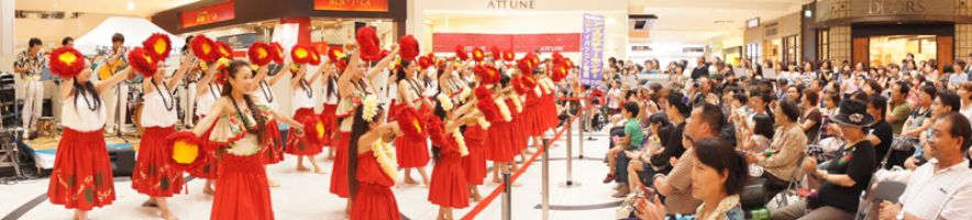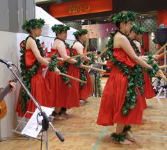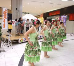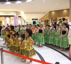 ハワイアンフラは始まる前から、お客様でいっぱい!フラの曲が流れると2階、3階まで、お客様で埋め尽くされました!見ている方も自然と体がフラフラ〜♪