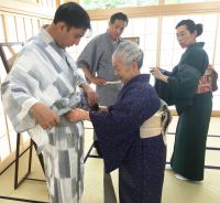 男性の帯もたくさんの結び方があり、先生のお手本の後