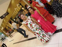 今その服を着て、マリークヮントでメイクをしてもらい、呼び込みをしていました。