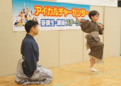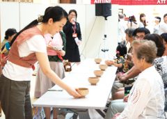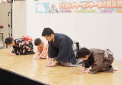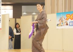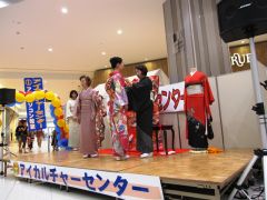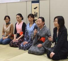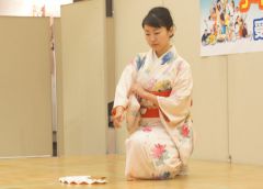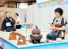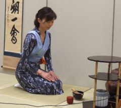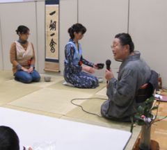 ステージ一面に畳を敷き詰めて桐原先生と生徒さんによる抹茶のお接待があり、賑わいました。