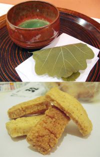 茶道一期一会は少しずつ人数が増えて今日は3名での開講です。受付で仕事をしていると、先生がお盆にお抹茶を2つとお饅頭を3つ載せて持ってきてくださりました。