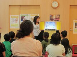 子供さんが多かったので、いつもコミュニケーションホールに置いてある「あめちゃん(関西風、飴玉の呼び方)」と一口大のチョコレートを、ビスケットが入っていた缶に入れて、教室に差し入れをしたところ大好評。