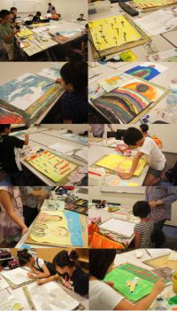 住吉先生はいつも子供の独創的な感性を引き出すものを準備していただき、感心するのですが、今日もガラスのお皿の絵付けと、なかなか面白いものが題材でした。