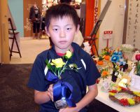 作品を手に、付き添いで来ている弟と一緒に、記念写真をパチリ!
