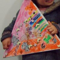 講座が終わった後、手のひら位のガラスのお皿に鮮やかな絵を描いたものをこども達が大事そうにお持ち帰りになっていました。